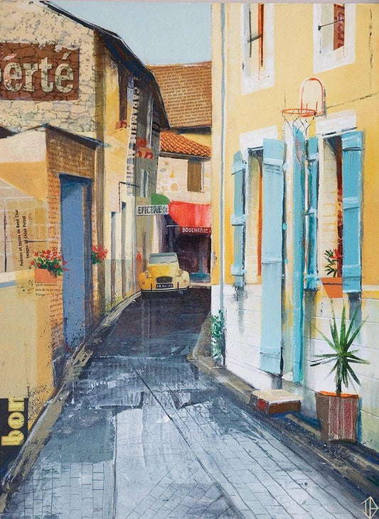 City Street White Modern Wood Framed Art Print with Double Matting by P.S. Art