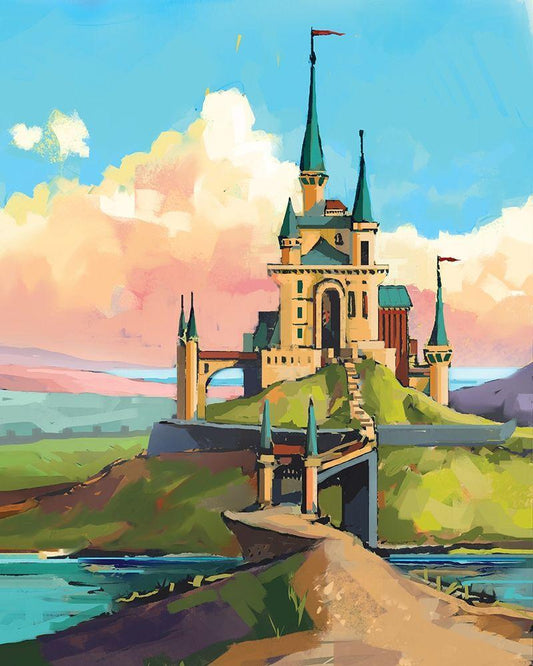 Castle White Modern Wood Framed Art Print with Double Matting by P.S. Art