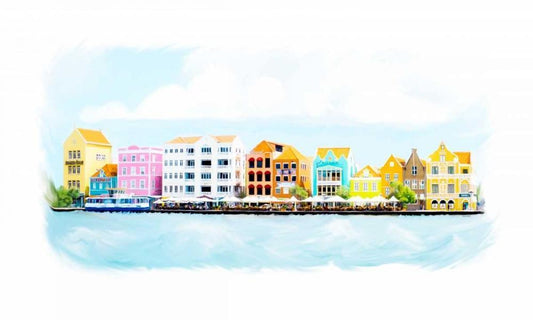 Willemstad Curacao Skyline White Modern Wood Framed Art Print with Double Matting by Murdock, Ramona