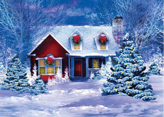 Christmas Meeting House White Modern Wood Framed Art Print with Double Matting by P.S. Art Studios