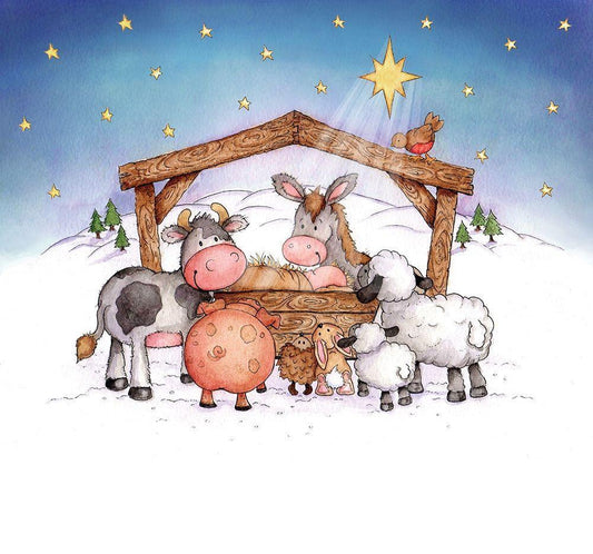 Animal Nativity White Modern Wood Framed Art Print with Double Matting by P.S. Art