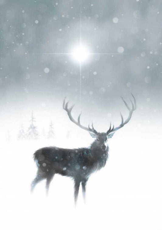 Holiday Deer White Modern Wood Framed Art Print with Double Matting by P.S. Art Studios