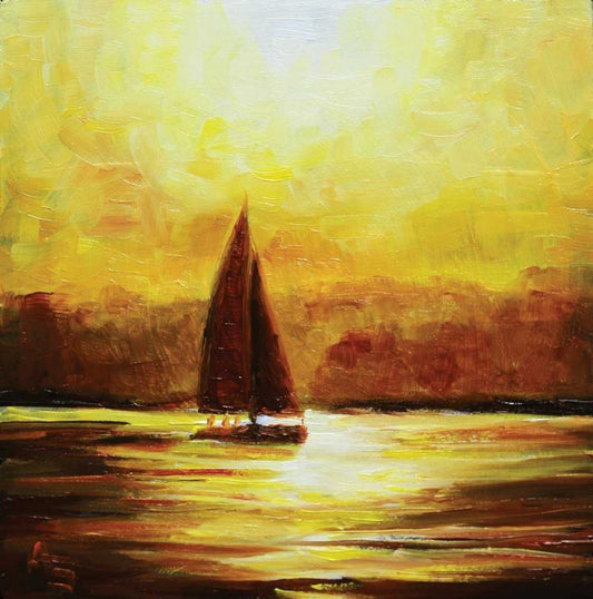 Sail Sunset White Modern Wood Framed Art Print with Double Matting by P.S. Art Studios