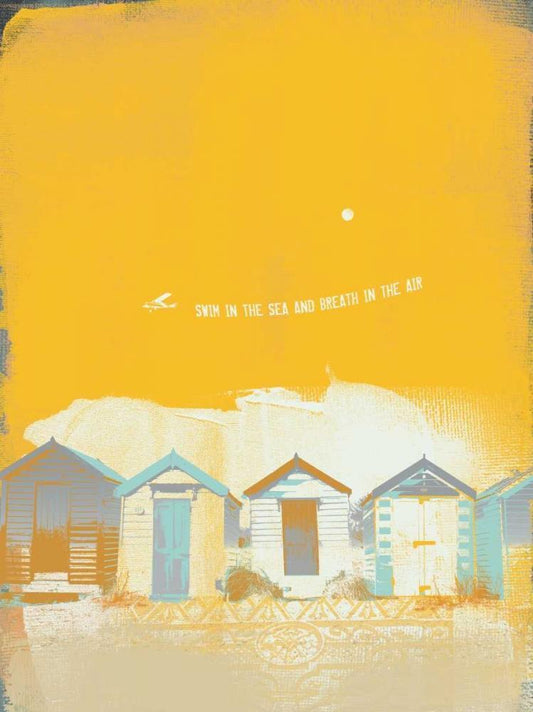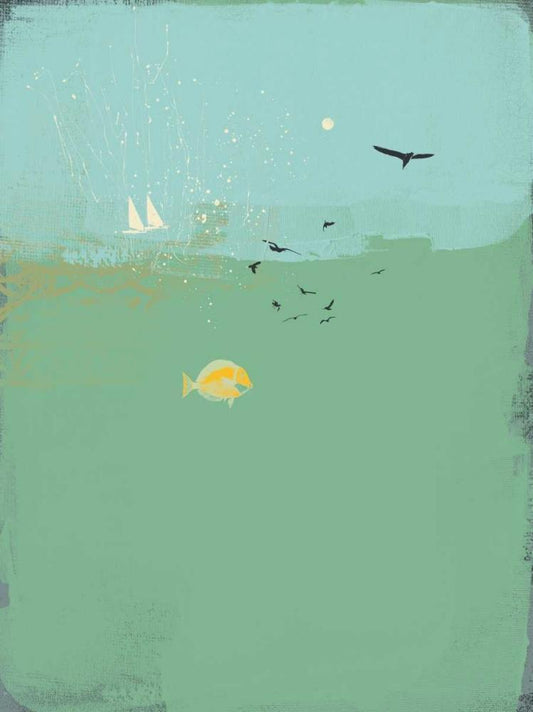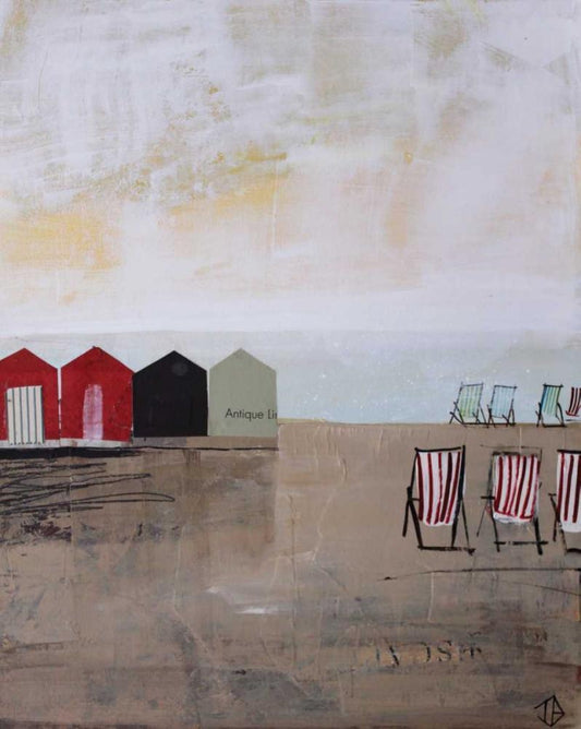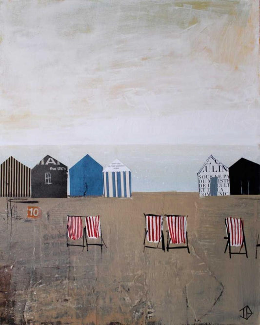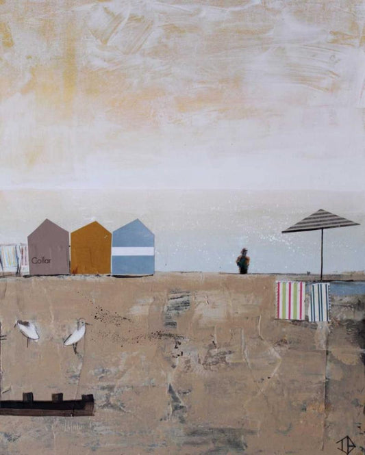 Beach Fun White Modern Wood Framed Art Print with Double Matting by P.S. Art Studios