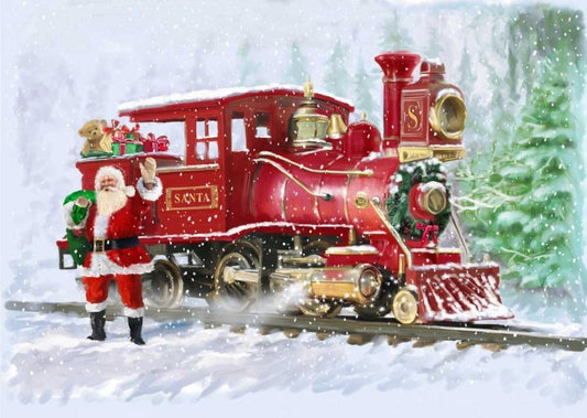Christmas Train White Modern Wood Framed Art Print with Double Matting by P.S. Art Studios