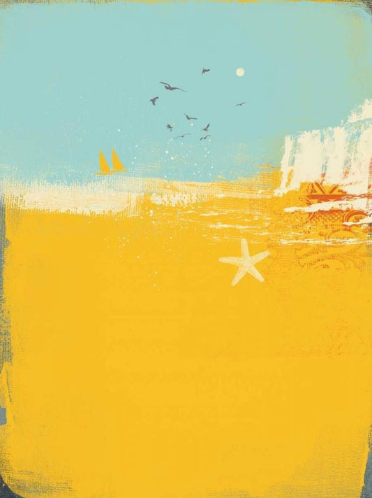 Beach Abstract I White Modern Wood Framed Art Print with Double Matting by P.S. Art Studios