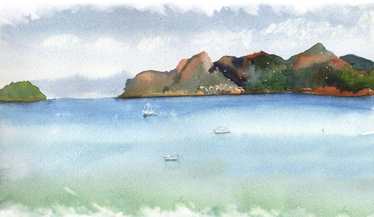 Sailboats White Modern Wood Framed Art Print with Double Matting by Shefranov, Olga