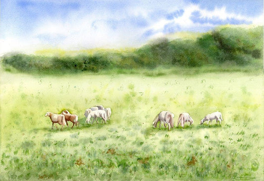 Field Scape White Modern Wood Framed Art Print with Double Matting by Shefranov, Olga
