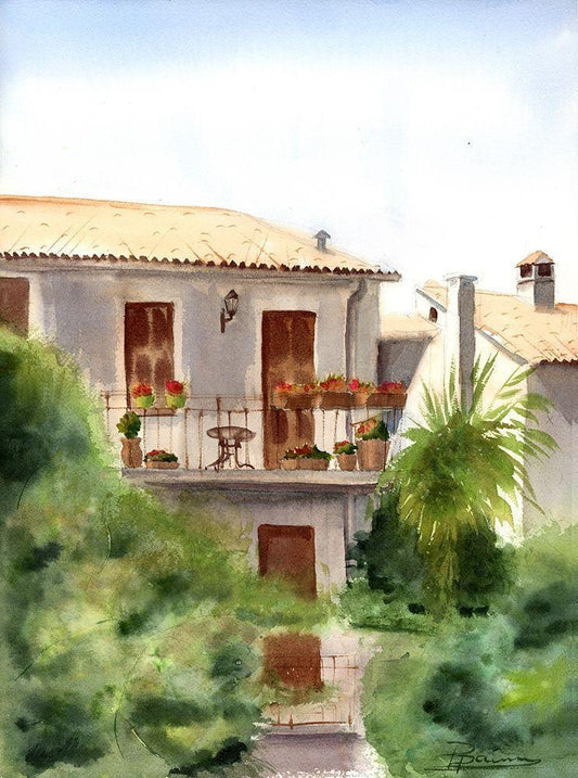 Veranda White Modern Wood Framed Art Print with Double Matting by Shefranov, Olga