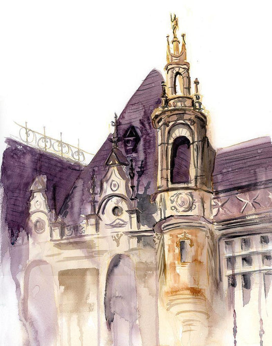 Castle II White Modern Wood Framed Art Print with Double Matting by Shefranov, Olga