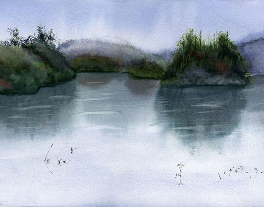Lake Scape White Modern Wood Framed Art Print with Double Matting by Shefranov, Olga