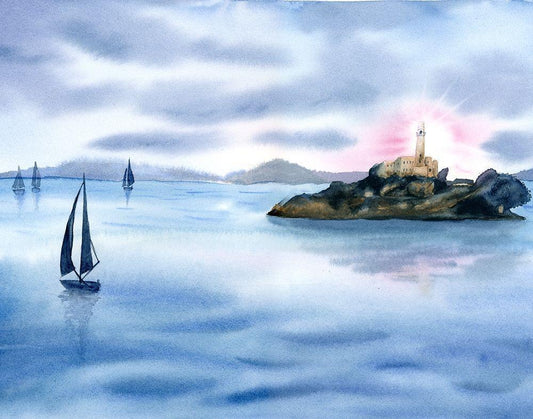 Lighthouse White Modern Wood Framed Art Print with Double Matting by Shefranov, Olga