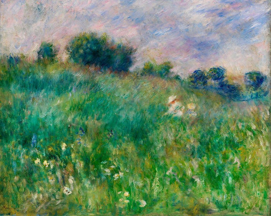 Meadow 1880 White Modern Wood Framed Art Print with Double Matting by Renoir, Pierre-Auguste