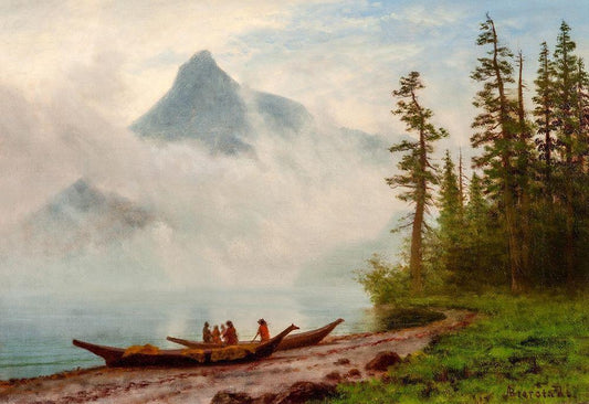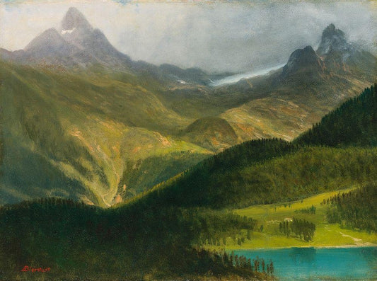 Mountain landscape White Modern Wood Framed Art Print with Double Matting by Bierstadt, Albert