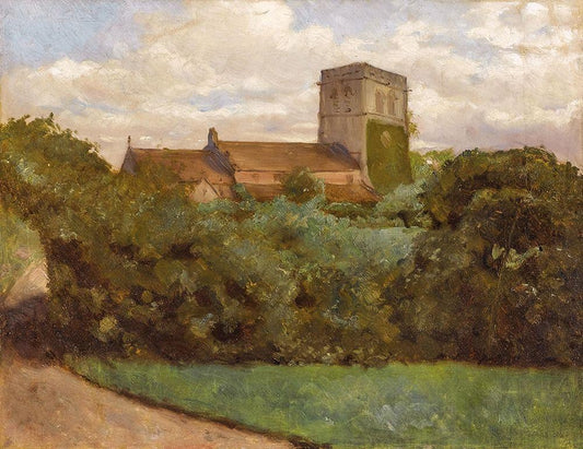 Tottenham Church, London, 1869 White Modern Wood Framed Art Print with Double Matting by Bierstadt, Albert