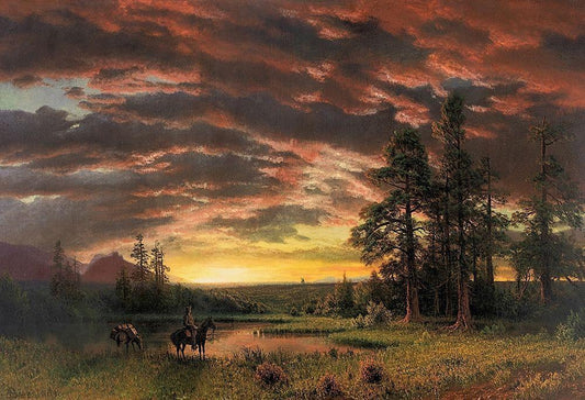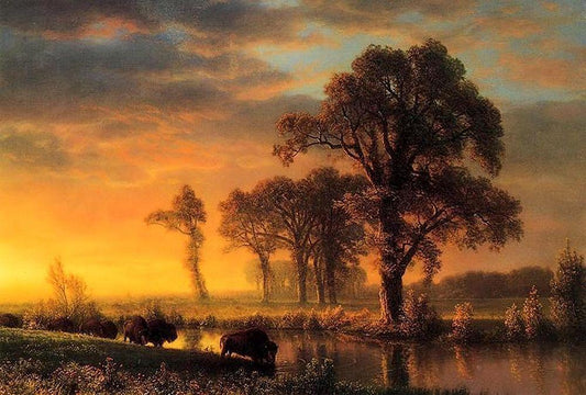 Evening on the Prairie White Modern Wood Framed Art Print with Double Matting by Bierstadt, Albert