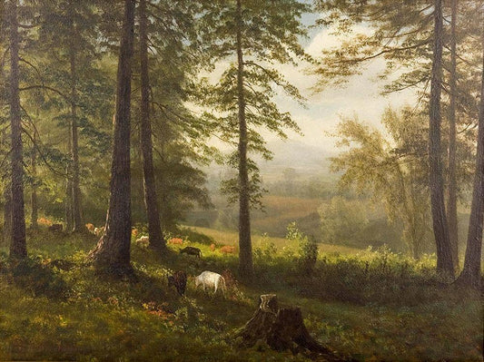 Wooded hillside White Modern Wood Framed Art Print with Double Matting by Bierstadt, Albert