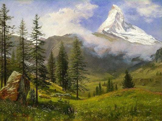 The Matterhorn White Modern Wood Framed Art Print with Double Matting by Bierstadt, Albert