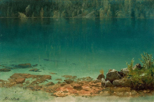 Lake Scene White Modern Wood Framed Art Print with Double Matting by Bierstadt, Albert
