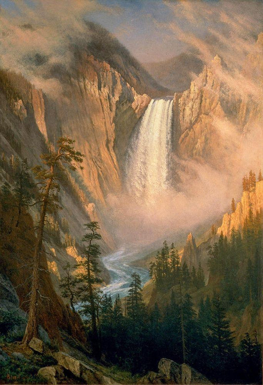 Yellowstone Falls White Modern Wood Framed Art Print with Double Matting by Bierstadt, Albert