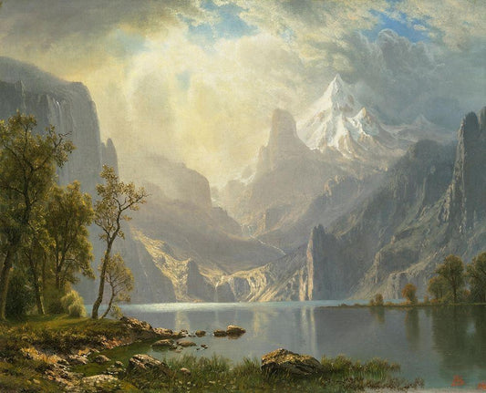In the Sierras, Lake Tahoe White Modern Wood Framed Art Print with Double Matting by Bierstadt, Albert