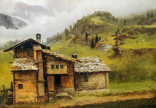 Mountain House White Modern Wood Framed Art Print with Double Matting by Bierstadt, Albert