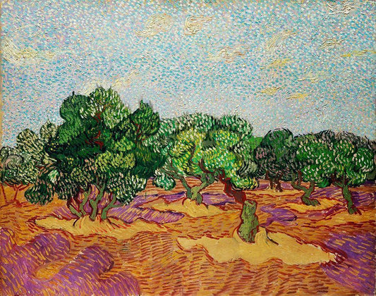 Olive Trees (1889) White Modern Wood Framed Art Print with Double Matting by Van Gogh, Vincent