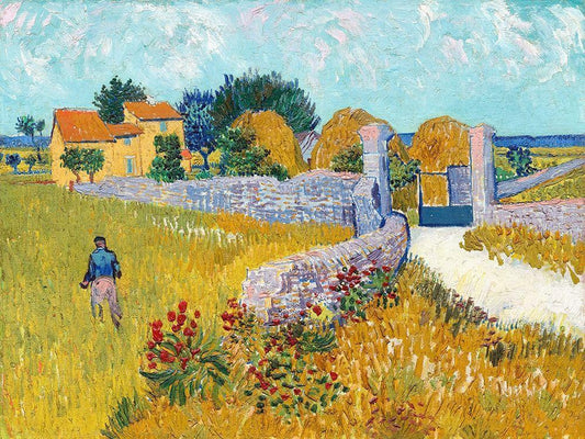 Farmhouse in Provence (1888) White Modern Wood Framed Art Print with Double Matting by Van Gogh, Vincent