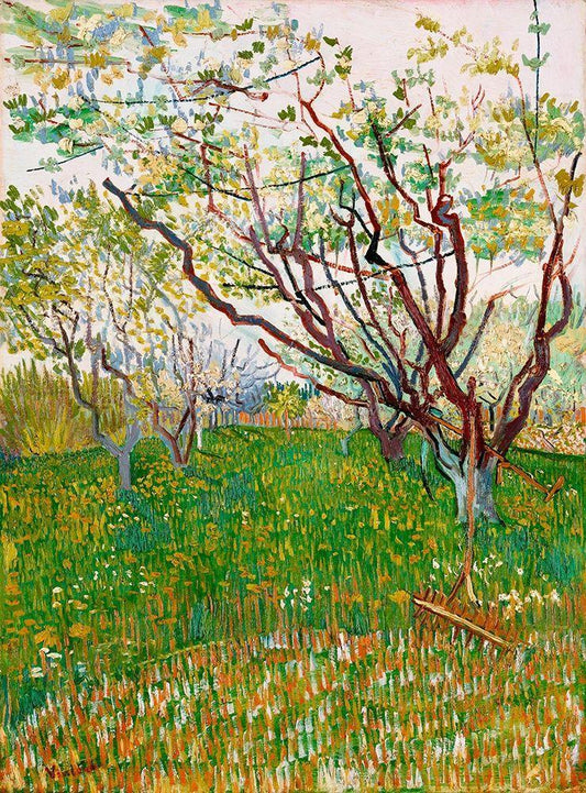 The Flowering Orchard (1888) White Modern Wood Framed Art Print with Double Matting by Van Gogh, Vincent