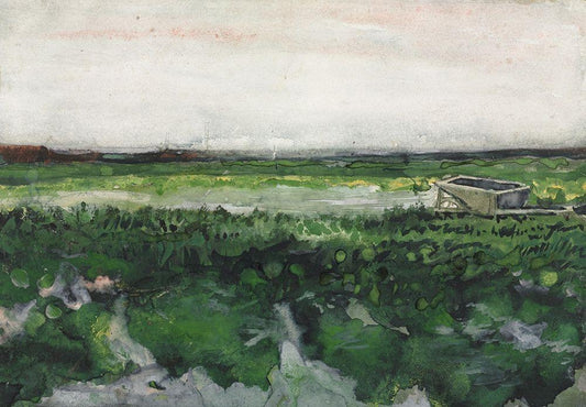 Landscape with Wheelbarrow (1883) White Modern Wood Framed Art Print with Double Matting by Van Gogh, Vincent