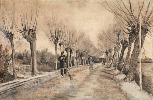Tetards (Pollards) (1884) White Modern Wood Framed Art Print with Double Matting by Van Gogh, Vincent