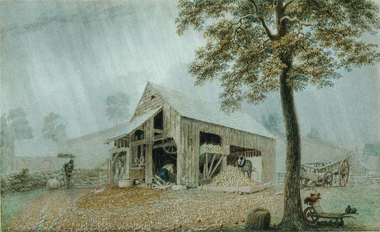 Rainstorm—Cider Mill at Redding, Connecticut White Modern Wood Framed Art Print with Double Matting by Harvey, George