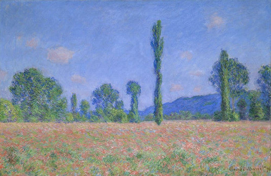 Poppy Field (Giverny) White Modern Wood Framed Art Print with Double Matting by Monet, Claude