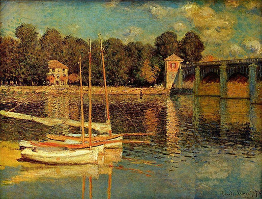 Bridge in Argenteuil White Modern Wood Framed Art Print with Double Matting by Monet, Claude