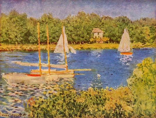 Seine at Argenteuil White Modern Wood Framed Art Print with Double Matting by Monet, Claude