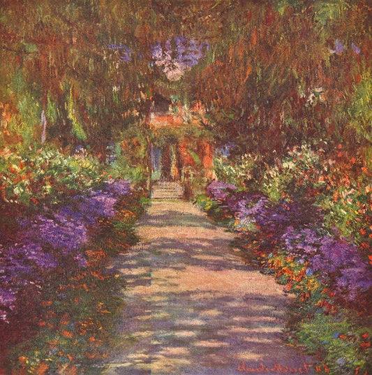 Garden way White Modern Wood Framed Art Print with Double Matting by Monet, Claude