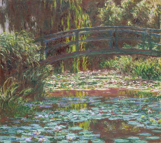 Water Lily Pond White Modern Wood Framed Art Print with Double Matting by Monet, Claude