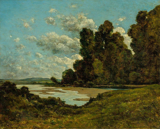 The River Loire at Nevers White Modern Wood Framed Art Print with Double Matting by Harpignies, Henri Joseph