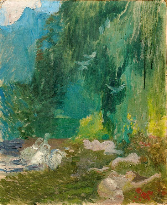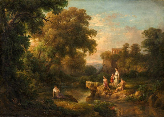 Diana and Her Nymphs White Modern Wood Framed Art Print with Double Matting by Marko, Karoly