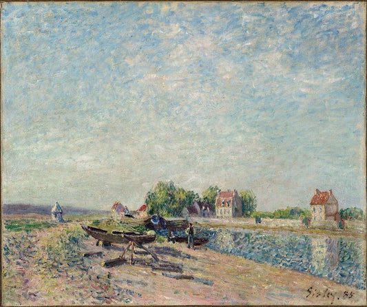 Saint-Mammes, Loing Canal White Modern Wood Framed Art Print with Double Matting by Sisley, Alfred