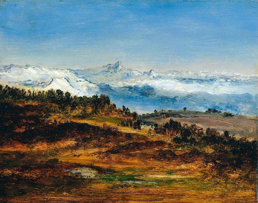 The Pyrenees, the Peak of the Midi de Bigorre White Modern Wood Framed Art Print with Double Matting by de la Pena, Narcisse Diaz