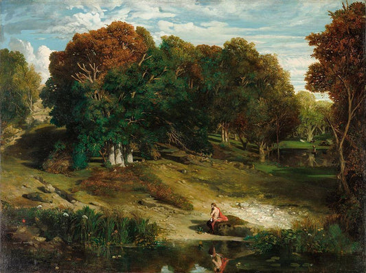 In the Forest White Modern Wood Framed Art Print with Double Matting by Nanteuil, Celestin Francois