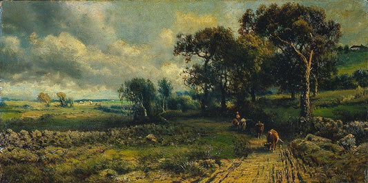 Fleecy Clouds White Modern Wood Framed Art Print with Double Matting by Inness, imitator of George