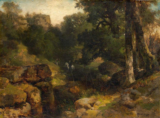 Woods Scene White Modern Wood Framed Art Print with Double Matting by Keller, Henry