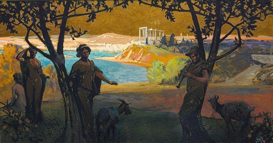 Mural Sketch Pastoral Study No 1 White Modern Wood Framed Art Print with Double Matting by Keller, Henry