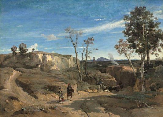 La Cervara the Roman Campagna White Modern Wood Framed Art Print with Double Matting by Camille, Jean Baptiste