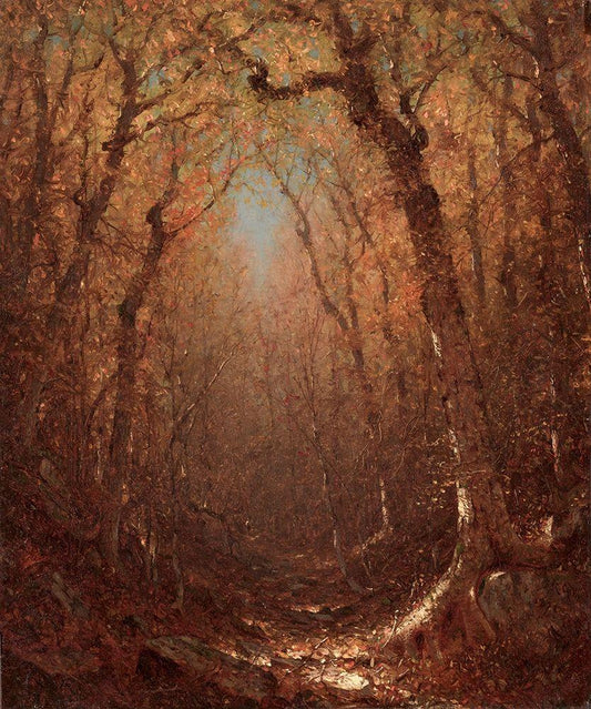 Autumn a Wood Path White Modern Wood Framed Art Print with Double Matting by Gifford, Sanford Robinson