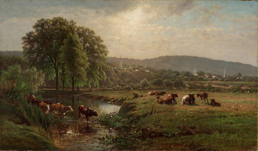 Cows in a Field White Modern Wood Framed Art Print with Double Matting by Inness, George in the style of