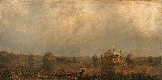The Stubble Field White Modern Wood Framed Art Print with Double Matting by Dearth, Henry Golden