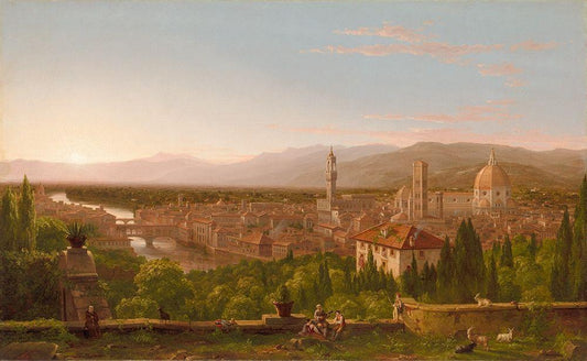 View of Florence White Modern Wood Framed Art Print with Double Matting by Cole, Thomas